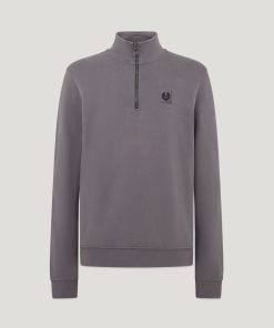 Men’s Cotton Fleece Belstaff Quarter Zip Sweatshirt In Old Silver Heather | Oldsilverheather
