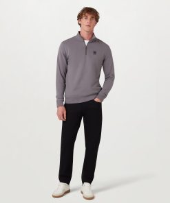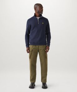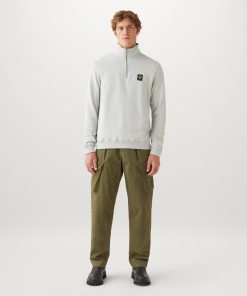 Men’s Cotton Fleece Belstaff Quarter Zip Sweatshirt In Old Silver Heather | Oldsilverheather