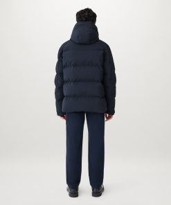 Technical hooded down jacket with large quilt channels