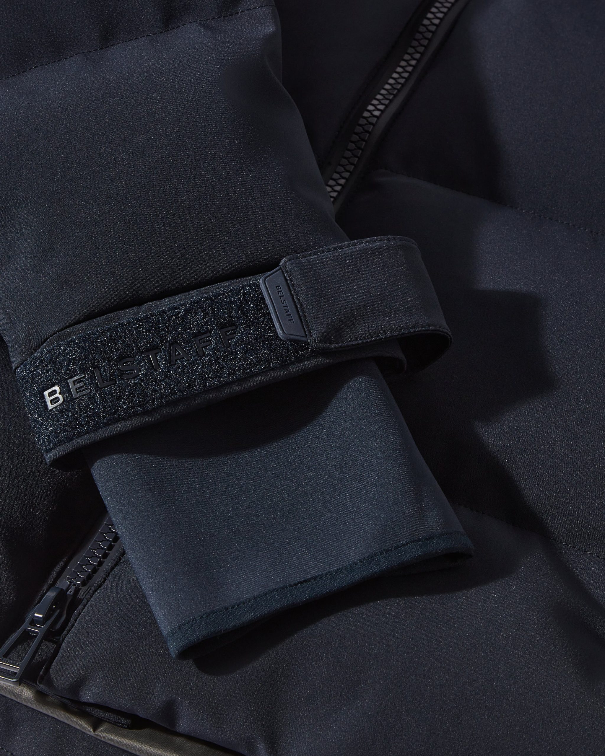 Silicone Belstaff logo on placket and cuffs