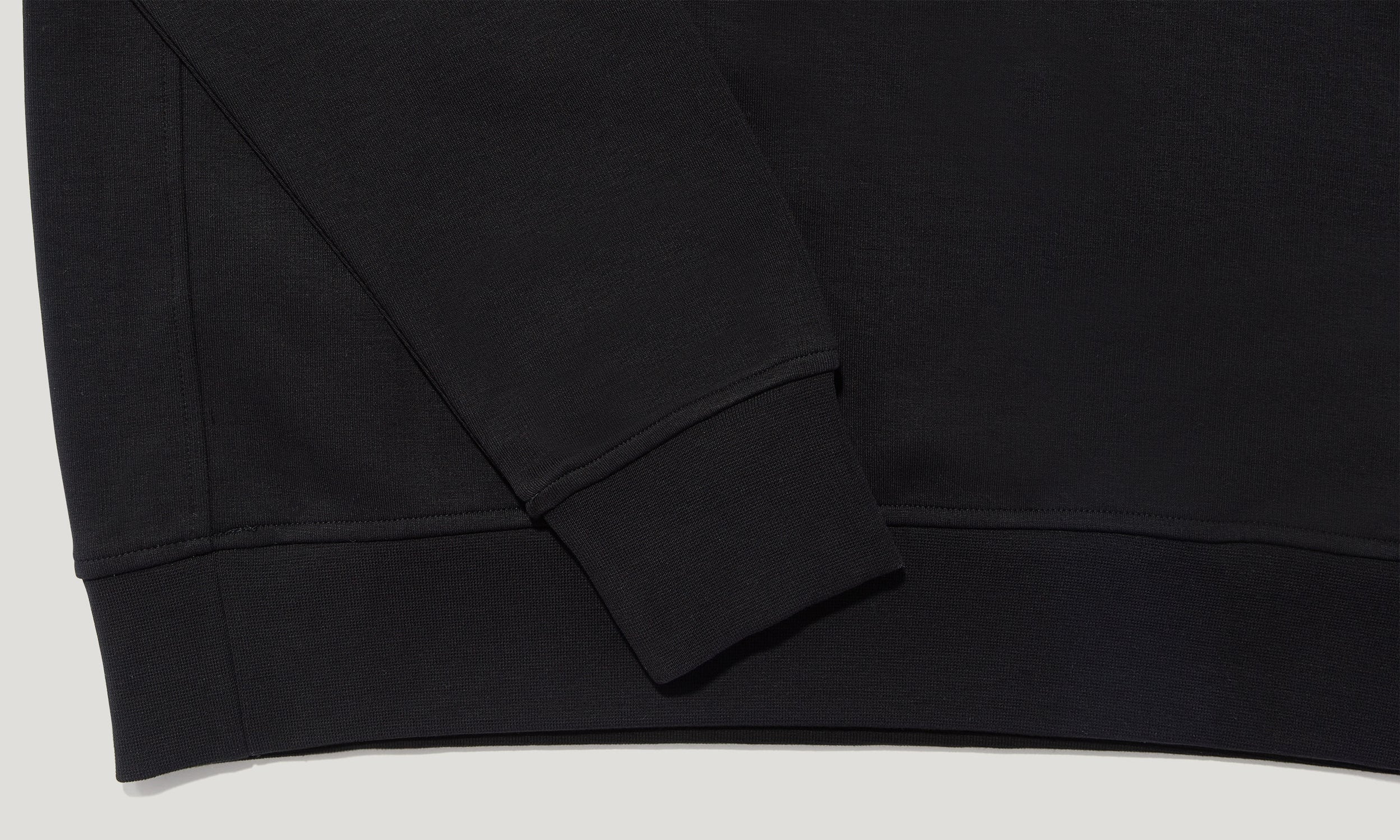 Flat knit ribbed collar, cuffs and hem