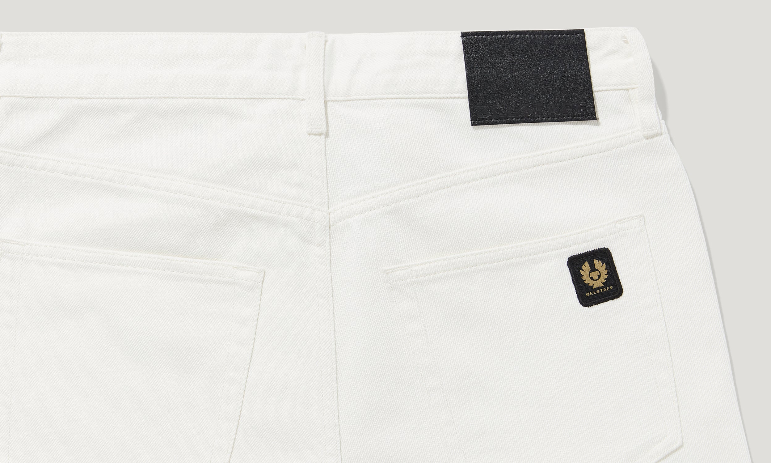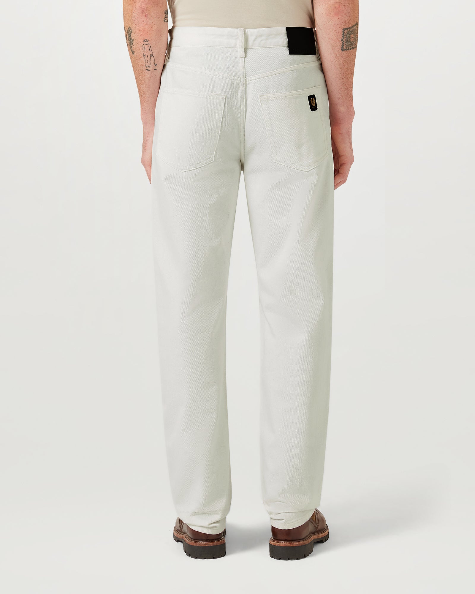 Direct embroidered phoenix patch on rear pocket and branded leather patch
