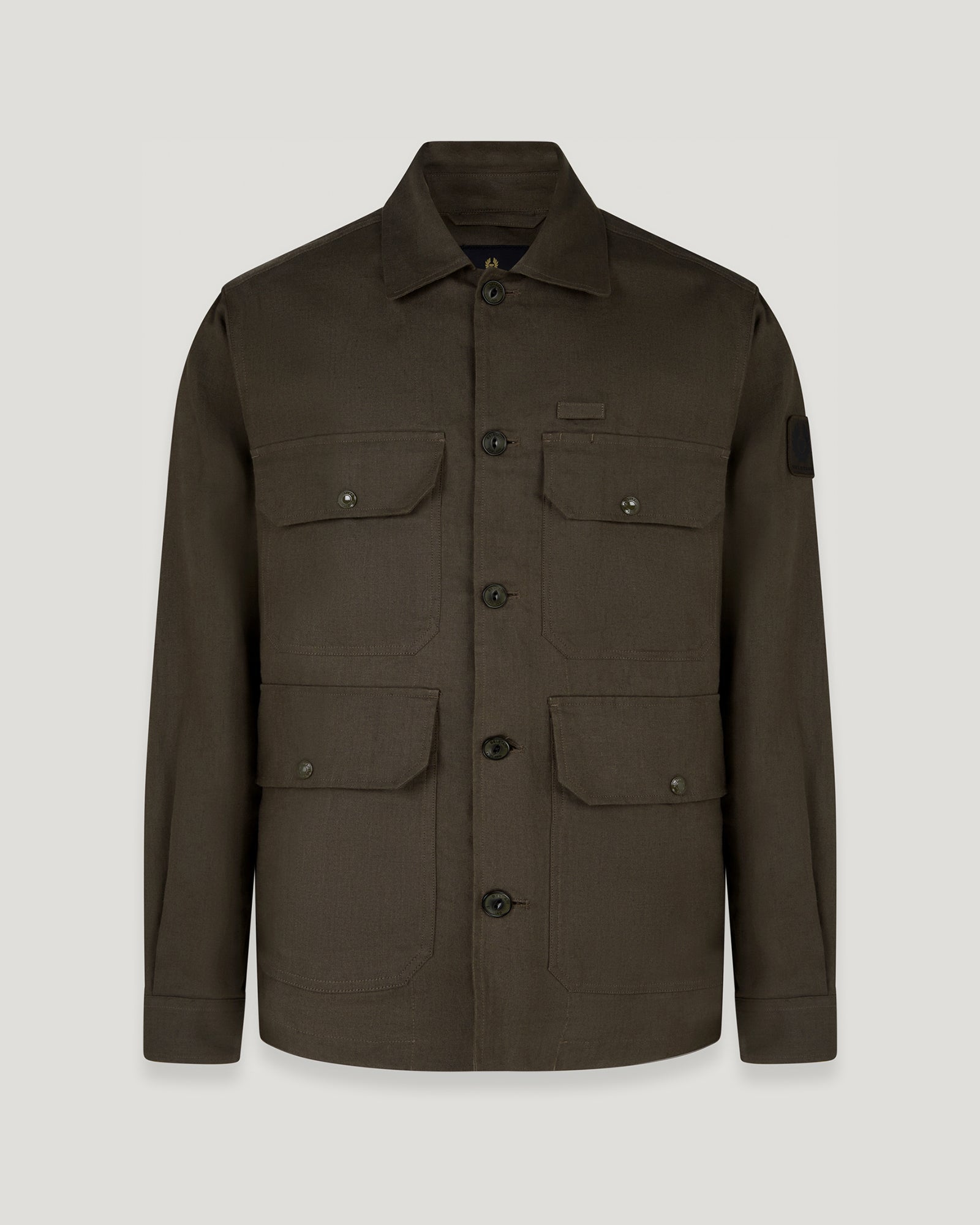 Tonal embroidered edge Belstaff phoenix patch on left sleeve