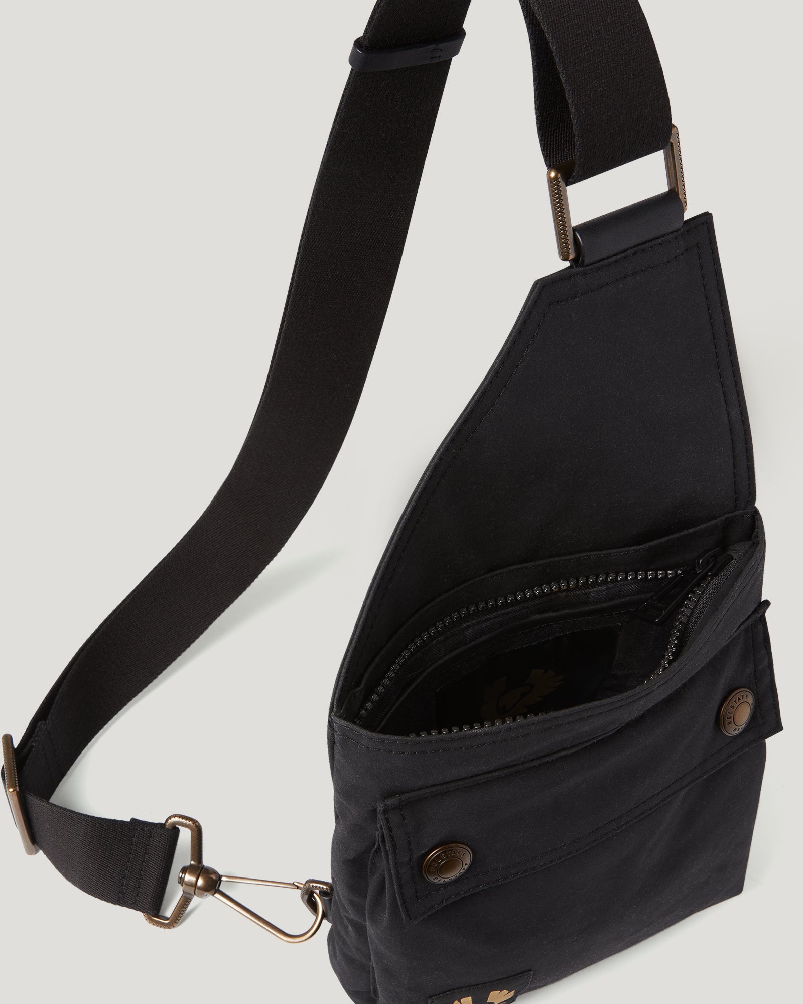 Pockets with signature antique brass metal hardware