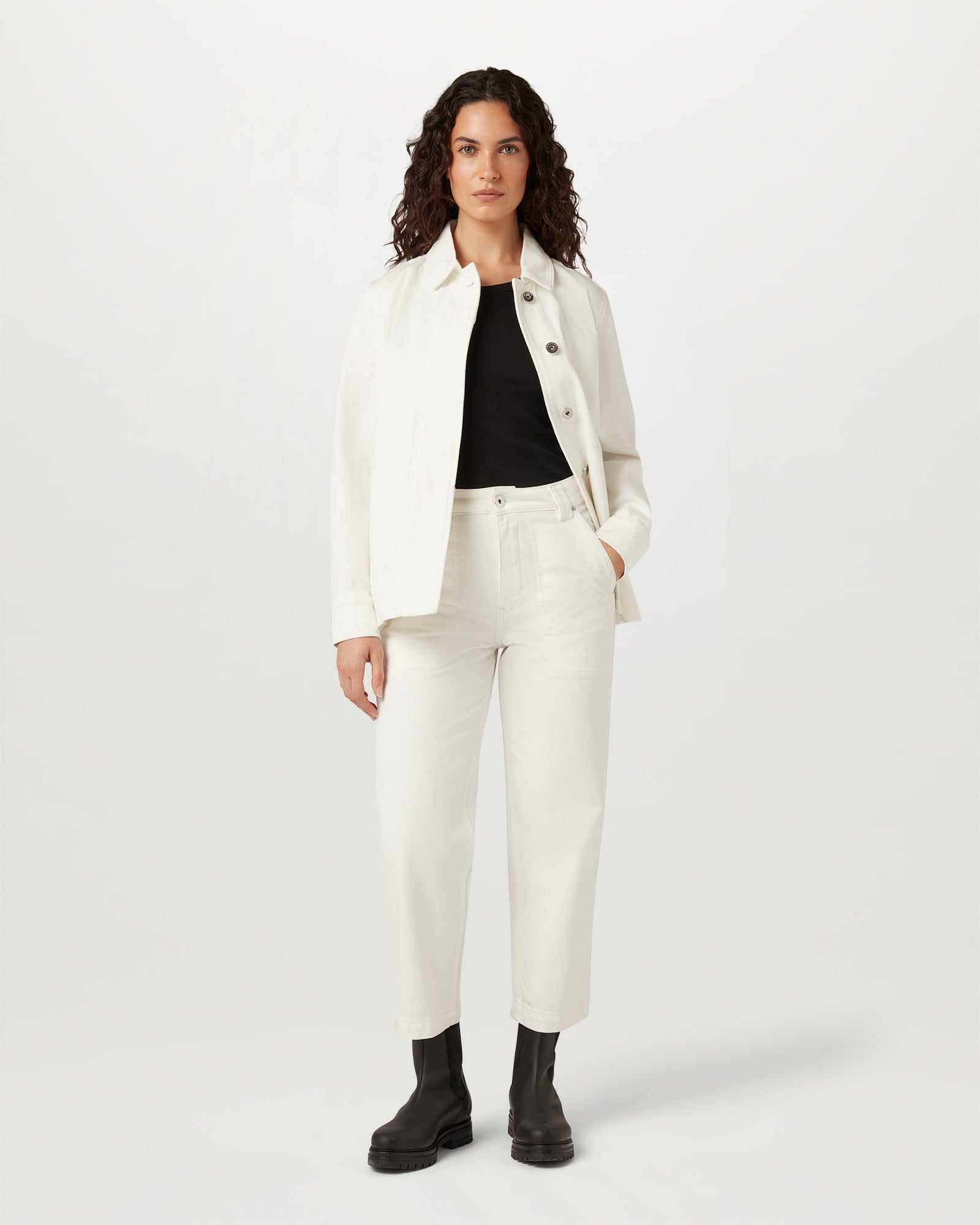 Straight leg denim trouser with utilitarian detailing